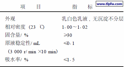 由于该防水剂无国家标准和行业标准, 因此, 我们参照有关产品的指标与工程应用的实际要求, 制订了企业标准(见表2) , 对产品进行质量控制。
