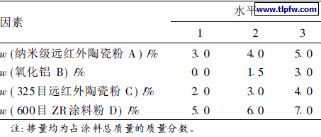 表7 辐射型外墙隔热涂料因素水平
