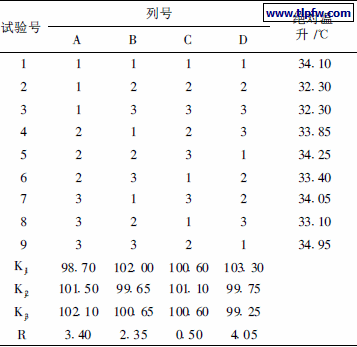 选取纳米级及325目远红外陶瓷粉、A l2O3粉状材料、600目ZR 涂料粉作为辐射型外墙隔热涂料的功能填料。采用L9 ( 34 ) 正交表进行正交试验。表7 为4 种材料的因素水平表, 表8为其正交试验结果及数据处理情况。