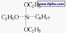 其中,R*为非活性基烷基,碳数4~10 为佳,碳数过小时,硅烷易挥发,烷基过大时,硅烷的渗透能力差。烷氧基碳数1~4 均可,但甲氧基在碱性条件下稳定性差,易与基材结合,影响渗透能力。德国wacker 公司研发的SIL RESBS 1701 有机硅防水剂主要成分为辛基三乙氧基硅烷,其分子结构式为: