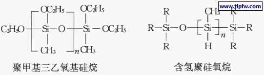 溶剂型有机硅防水剂多为聚甲基三乙氧基硅烷树脂、含氢聚硅氧烷等,溶剂多选用醇类溶剂。其分子结构式如下: