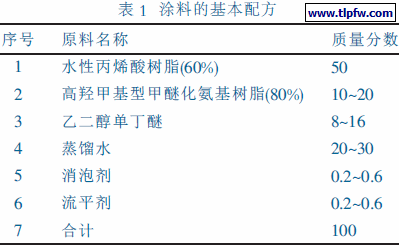 水性丙烯酸氨基烘烤清漆的基本配方见表1。