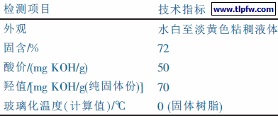 表2 水溶性丙烯酸树脂的技术指标