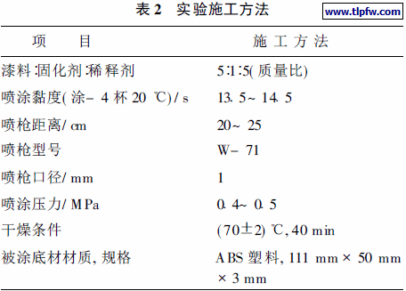 本实验为手工喷涂, 具体的施工方法如表2 所示。