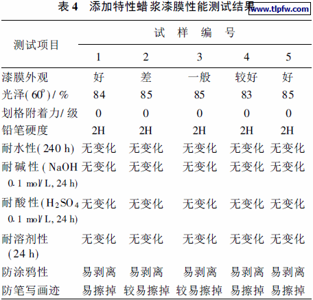 研究添加特性蜡浆后对珠光防沾污塑料漆性能的影响。