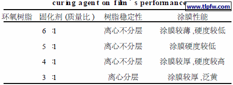 表5 不同配比树脂和固化剂对涂膜性能的影响