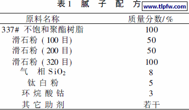 不饱和聚酯腻子是用于汽车、高档家具等涂装的新型材料, 替代了以前所使用的石膏浆、桐油灰等产品。它具有使用方便、固化时间短、打磨松度好、表面光洁度高、附着力强等优点, 受到用户的