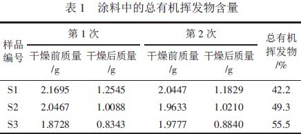 按照GB/T 18582—2001《室内装饰装修材料内墙涂料中有害物质限量》对3 个丙烯酸内墙乳胶漆样品(S1、S2、S3)分别进行总挥发物含量、卡尔·费休法水含量以及涂料密度的测试,用以确定3 个待测样品中TVOC 的全含量。