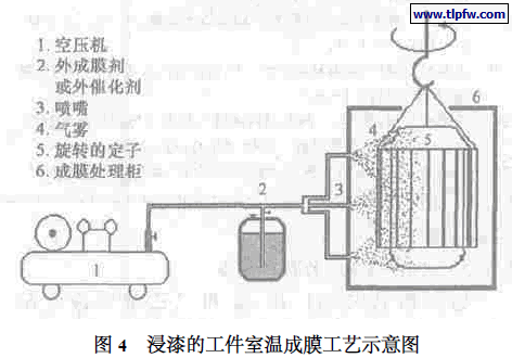 在不饱和聚酯玻璃钢行业,应用成膜添加剂来抑制苯乙烯的挥发和改善表面的固化性能。其原理是不饱和聚酯在固化过程中由于成膜添加剂的溶解度有限而迁移至表面,成膜添加剂与空气中氧接触能快速固化成膜,阻拦苯乙烯的挥发并隔离氧。性能良好的成膜添加剂1 %~2 %的添加量就可使苯乙烯的挥发减少50 %~90 %。但成膜添加剂对动态表面效果不佳[16 ]。由于浸渍的电器部件的为复杂的非水平表面,并且有定向流动性,成膜添加剂的迁移至表面的成膜添加剂与周围的不饱和聚酯界面结合不良可能会绝缘的性能。但是采用前面相似的方法在绝缘表面喷履一层薄薄地成膜剂,可达到比内加成膜添加剂更好的效果。和成膜添加剂一样,外成膜剂是一种低温下反应活性很高的不饱和聚酯苯乙烯溶液,一般由干性植物油、乙烯基、烯丙基等高活性不饱和单体改性而成。在引发剂引发后,这些不饱和基团受氧阻聚的影响较小甚至能借助空气中的氧而氧化交联固化;也可以仅有含促进剂,当与绝缘表面接触后可以迅速引发绝缘漆中的过氧化物分解而固化成膜。