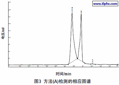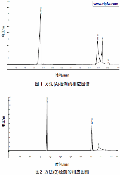 按2.3 所设条件检测色谱图见图1、图2。检测数据见表1。