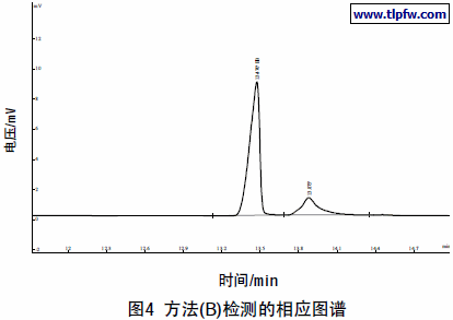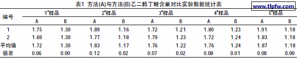 而方法(B)则在方法(A)的基础上,采取了“三低”检测条件,即降低起始柱温、降低升温速率、降低进样口温度,将乙二醇丁醚的沸点设定为进样口的温度,从而能够将乙二醇丁醚与低温封闭物有效地分离开,如图4,保证检测结果与理论配方值吻合。