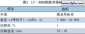 低温施工、环保节能乳胶漆的研究形成主要是L T—3000多功能助剂在起作用。L T—3000多功能助剂主要是利用植物胶化学改性而成,各种内外墙乳胶漆中适当地添加该助剂后,发挥了较好的特殊作用。其技术指标见表3。