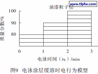 假定电泳样板时间确定为3 min,同时把试验Ⅱ的结果(3 min 内)换成另一种形式表达在图9 上,图中每个层次代表油漆粒子层。
