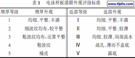 ⑵试验方法:在不同工艺条件下,测试电泳样板上单位面积的漆膜质量,同时考察漆膜外观。