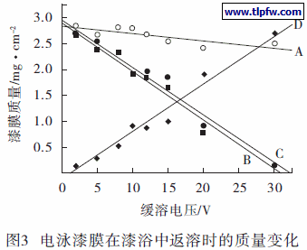 ①电泳漆膜在漆液中的返溶质量和返溶时间成线性关系,可以用公式⑶表示: