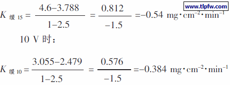 K 缓5=(1.66-1.85)/(240-120)=-0.00158 mg·cm-2·min-1