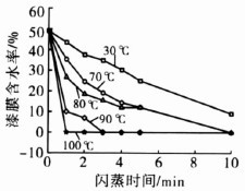 图3 不同闪蒸温度下闪蒸时间与漆膜含水率的关系