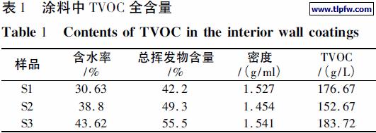 按照GB /T18582 - 2001《室内装饰装修材料内墙涂料中有害物质限量》,对3 个丙烯酸内墙乳胶漆样品( S1,S2,S3) 分别进行采样制样,对其TVOC进行测定,用以确定3 个待测样品中TVOC 的全含量。