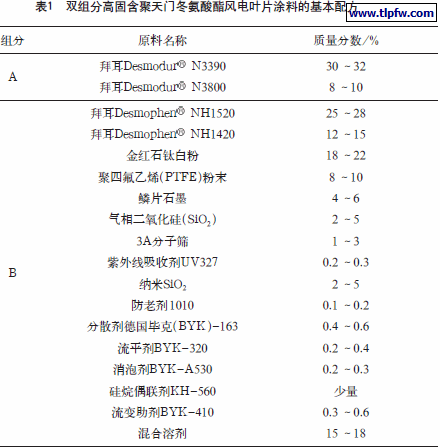 双组分高固含聚天门冬氨酸酯风电叶片涂料的基本配方,见表1。