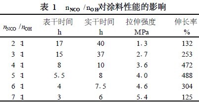 2. 2. 1 nNCO / nOH对涂料性能的影响