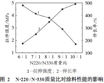 2. 2. 2 N-220 /N-330质量比对涂料性能的影响