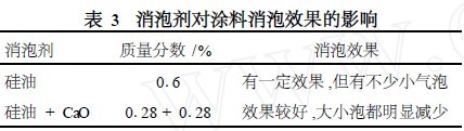 由表3可知,硅油和CaO质量分数各0.28%复配消泡剂效果较佳,硅油消除大泡, CaO吸收小泡。