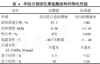 2. 3 单组分湿固化聚氨酯涂料的物化性能