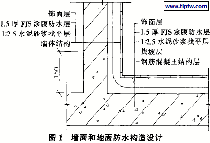 该项目室内墙面和地面的防水构造设计见图1所示。