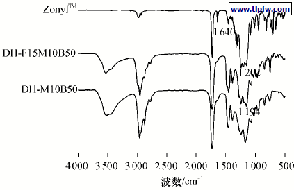 图2 ZonylTM 、DH2F15M10B50及DH2M10B50的红外图谱