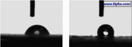 图7 DH2M10B50 CED膜及DH2F15M10B50 CED膜上水滴外形图