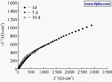 图8 铁片在315%NaCl溶液中不同浸泡天数的Nyquist谱图