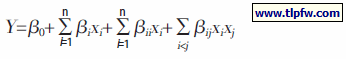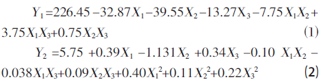 将获得的试验数据运用数学模型进行方程的回归拟合,得到一个二次多项式方程,该方程描述了模型响应值与自变量因子之间的关系,其模型方程为: