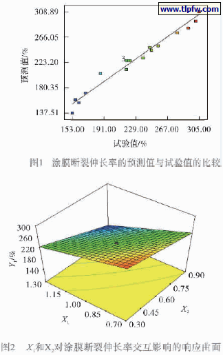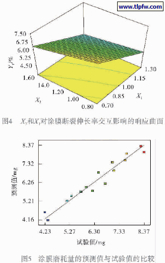 综上所述,由方差分析的结果可知:2 个模型方程在本试验的范围之内可以很好地预测涂膜的断裂伸长率和磨耗量。