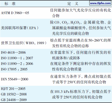 表9 不同标准对VOC的定义