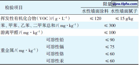 表10 GB 18582—2008 室内装饰装修材料内墙涂料中有害物质限量