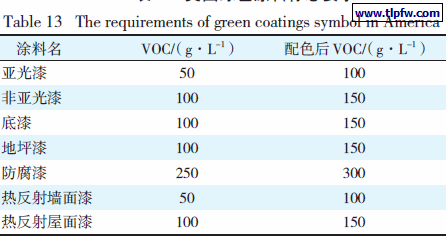 表13 美国绿色涂料标志要求