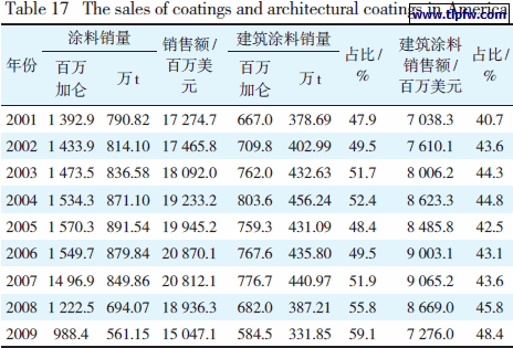 表17 美国涂料和建筑涂料销量
