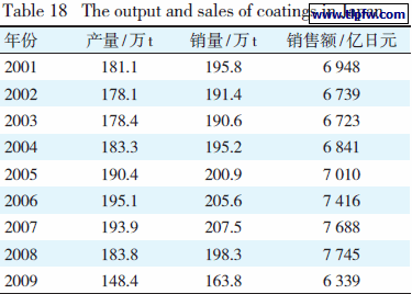 表18 日本的涂料产量和销量