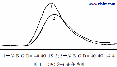 反应结束后, 取少量乳液, 破乳, 将沉淀的聚合物溶于四氢呋喃, 用GPC 法测定其分子量及其分布[ 4] 。