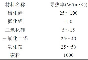 通过查询相关资料,得知表1 中常用无机填料的导热率。为较大幅度地提高树脂导热性,我们通过试验探索了在有机高分子树脂体系中加入导热性好的纳米无机填料的可行性。