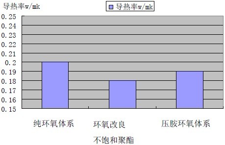 聚合物的热传递则主要依靠分子或者原子做热振动来传递,显然,这样的热传递过程的最终结果就是低的热导率。我们在环氧树脂中分别引入不饱和聚酯树脂和亚胺基团,图1 是三种物质的导热率对比,由图中可见通过改变分子结构的办法来提高树脂导热性是有限的[4]。