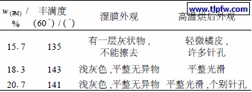 注:电泳电压50V,电泳时间60 s,乳液温度27 ℃,树脂配方中亲水剂含量为7.1%。