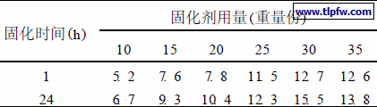 表3 固化剂用量对剪切强度的影响(M Pa)