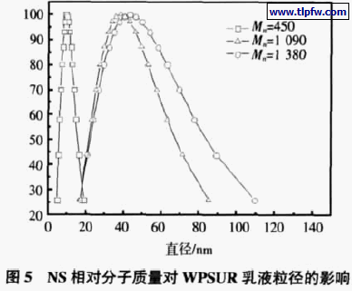 2.2 NS 相对分子质量对WPSUR 乳液粒径的影响