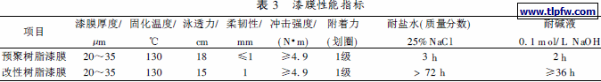 类型变化, 分子量变化, 漆液的pH 值, 固含量的波动均能造成泳透力的变化.扫描电镜检测进一步显示, 漆膜分别在0. 1mol / L NaOH 碱液, 25% 的NaCl 溶液中浸泡24 h后, 其表面结构基本完好.