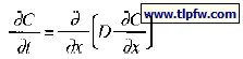 对海洋环境下的钢筋混凝土,氯盐污染导致的钢筋锈蚀是导致结构失效的最主要因素,因此结构的使用寿命预测也主要针对氯离子侵入过程的计算来进行。氯离子侵入混凝土主要有4种方式:扩散作用、毛细管作用、渗透和电化学迁移,同时还伴有氯离子与胶凝材料之间的化学结合、物理粘结以及胶凝材料对少量水溶性氯离子的吸附过程等。在建立寿命预测的计算模型时,可将上述几个过程简化为一个总体的“表观扩散”过程,并用费克第二定律来表示。此定律能较好地描述氯离子在混凝土中的迁移行为,其解可以很好地拟合现有结构的实测结果,因而成为目前国际上通用的最有效的寿命预测模型。费克第二定律可以表示为下面的偏微分方程: