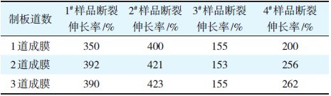 表3 标准状态下不同成膜情况断裂伸长率测试结果