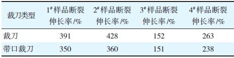 表4 标准状态下不同裁刀断裂伸长率测试结果