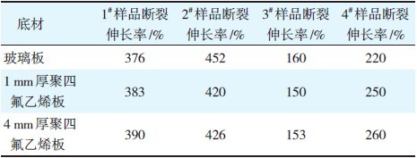 表1 标准状态下不同底材的断裂伸长率测试结果