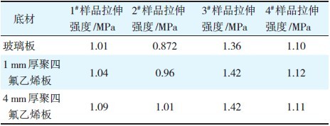 表2 标准状态下不同底材的拉伸强度测试结果